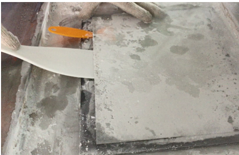 6、开始分离作业时,拿住产品的四个角,轻轻扭动,使液晶与盖板玻璃脱离。如果产品厚而