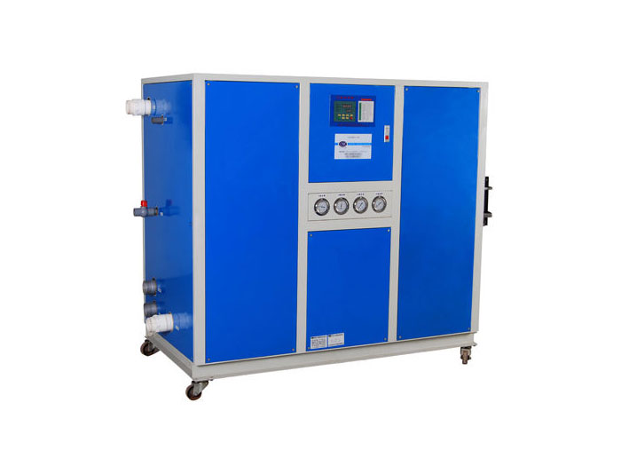 该水冷箱体式冷水机主要由涡旋式压缩机、水冷冷凝器、过滤器、液路控制阀、热力膨胀阀、内螺纹铜管蒸发器、电气控制系统等组成。